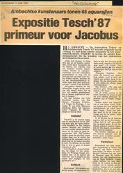 Eerste deel van een artikel over de eerste groepsexpositie van Tesch '87, in het Jacobusziekenhuis in Zwijndrecht.