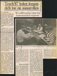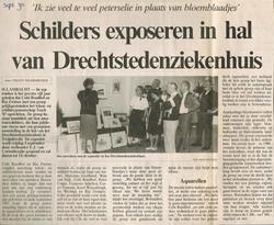 Artikel over de expositie in het Drechtstedenziekenhuis, lokatie Jacobus, naar aanleiding van het 10-jarig bestaan van het teken- en schildergenootschap Tesch '87.