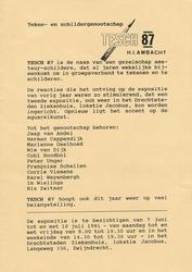 Tekst van de uitnodigingskaart voor de tweede groepsexpositie van Tesch '87